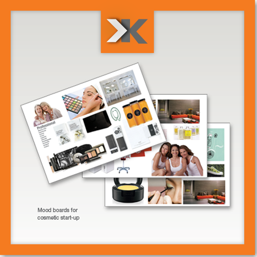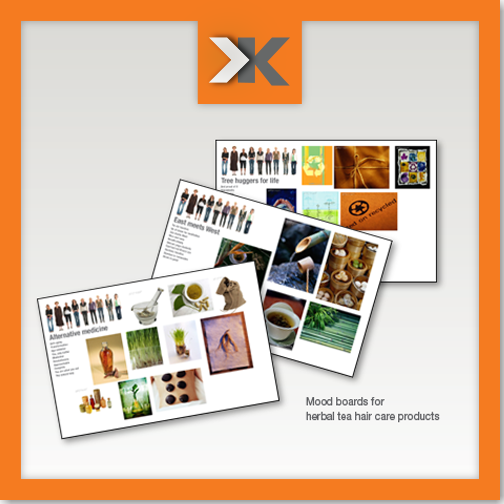 The first step in translating the company philosophy into a brand identity is the development of mood boards to give a graphic reference and focus.